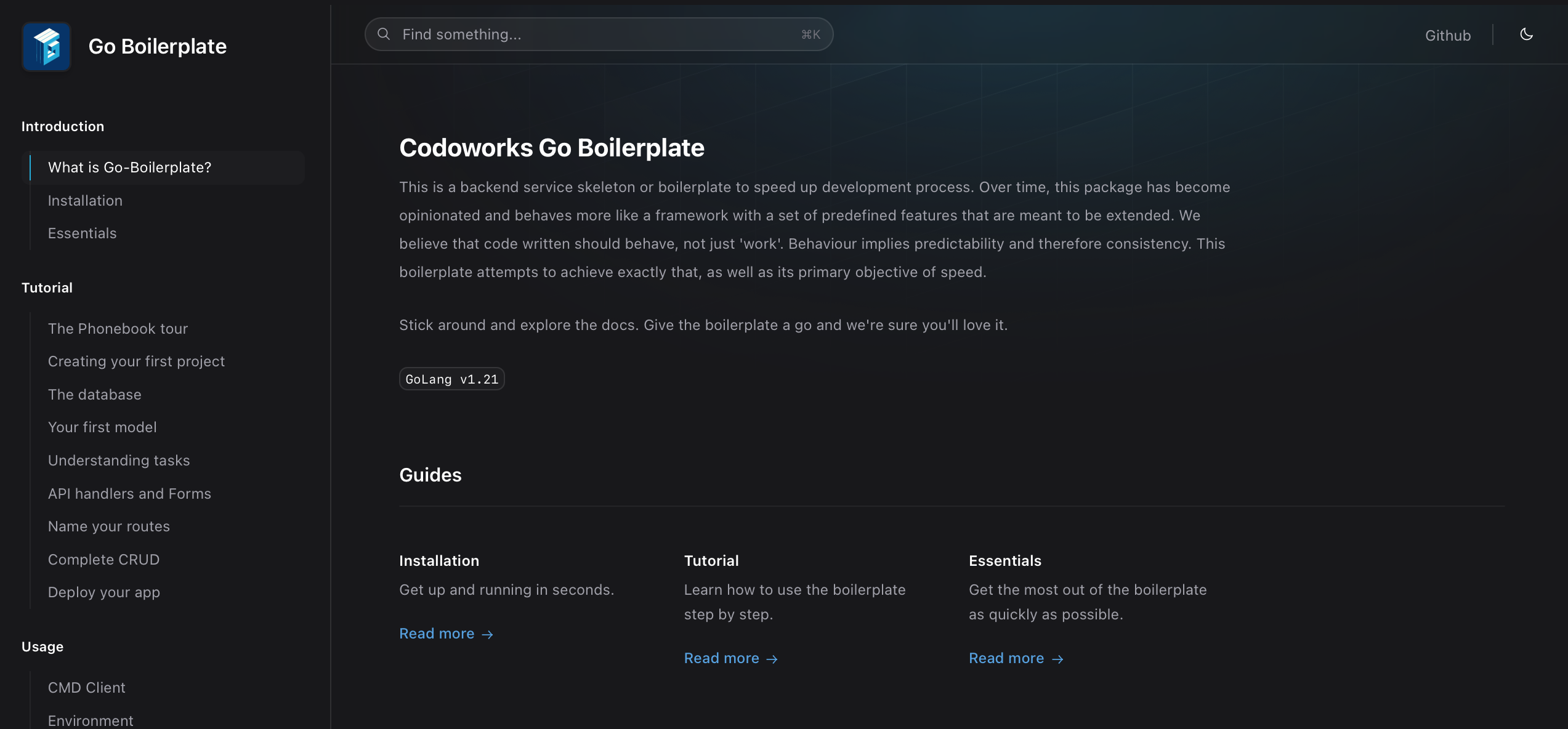Go boilerplate Docs